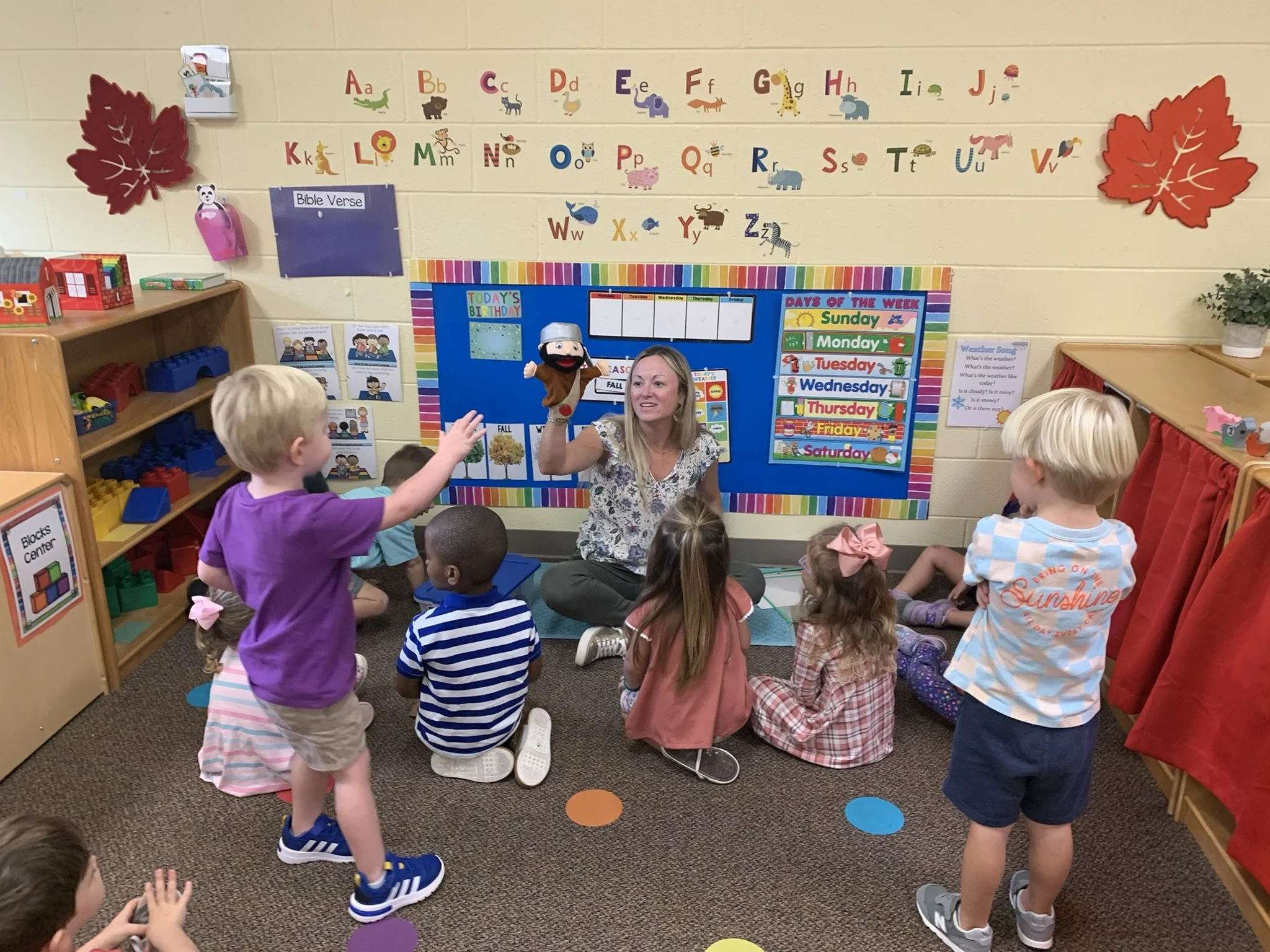 For us, our most important quality is that we create an environment where children feel loved and can learn and grow in God’s love. We do this by providing a half day, developmentally appropriate, early childhood experience for children 15 months through PreK. We offer a variety of age appropriate classes operating on the academic year. We utilize Wee Learn Curriculum as our foundational basis to build upon, introducing Biblical concepts in all of our weekly lessons. Our classrooms are set up with learning centers that encourage a “play-with-a-purpose” approach and hands on experiences that are coordinated to a child’s level of development and readiness. It is through this process that children are developing and fine tuning their skills. The classroom experiences stimulate creativity and self-expression while at the same time developing skills for school-readiness.